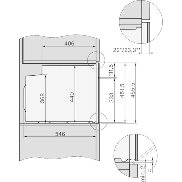- Reaktion bei Annäherung: Garraumbeleuchtung oder Display gehen an, Signaltöne aus und Möbelfronten werden erkannt.