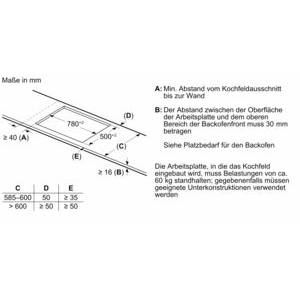 - Erforderliche Nischenmaße (HxBxT mm): 55 x 780 x (500 - 500)